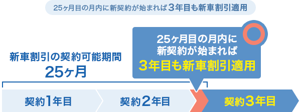 新車割引とは. 新車割引とは、保険開始の月が 契約車両の初度登録年月から25ヶ月以内 の場合に保険料が割引になるものです。. <注1>. 新しい車に乗っている人は、新車割引を採用している保険会社で契約すると保険料が安くなるかもしれません。. <注1>. 初度登録年月から25ヶ月を超えていても、49ヶ月以内であれば、. 車両保険部分の保険料だけが割引になる保険. 新車割引の割引率は、加入保険によって異なりますが、数%~10%程度が 割り引かれます。 例えば、月々10000円の保険料を新車割引(10%引き)で契約 新車 割引 した .